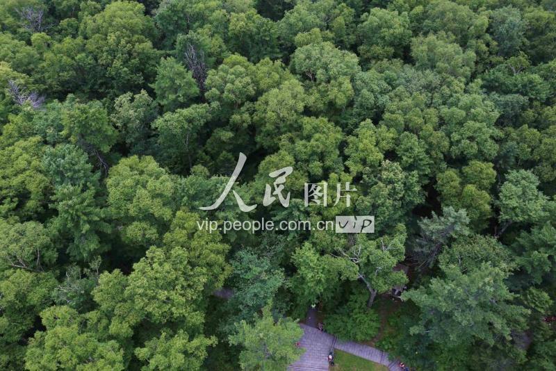 2016年7月19日,游客在黑龙江省伊春市汤旺河区汤旺河国家公园内游览。 盛夏时节,位于小兴安岭南麓的黑龙江省伊春市汤汤旺河国家公园清风拂面,一望无垠的大森林,在朵朵白云映衬下,如诗如画、美轮美奂,令人心旷神怡。
