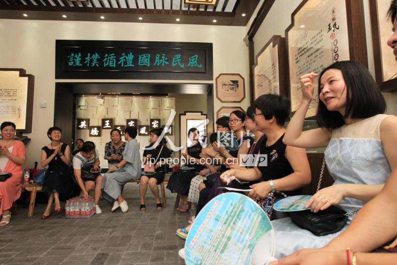 7月29日,在浙江省温州市龙湾区永昌堡英桥王氏家训展馆内,龙湾区30余名科(局)级干部配偶围座一圈畅谈“廉洁好家风”。
