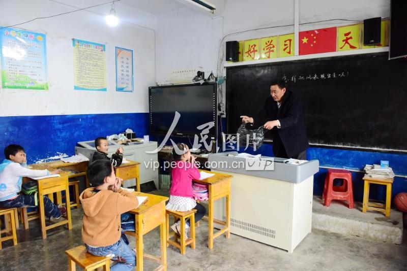 在湖北省恩施土家族苗族自治州恩施市红土乡大岩村,就有这样的一个村小教学点——湖坪教学点,在这个小学,只有1个老师4个娃儿。担任这所小学的老师叫文德高,今年58岁,既是老师、又是班主任、还是校长,担任这个班的语、数、音乐、体育、美术、劳动、思品等多门学科。 这个班的4个娃娃学生,有3个男生,1个女生,只有7岁,都是留守儿童。早上7点半开课,到下午3点半,每天6节课。 文德高在这个学校成为唯一的老师,2015年到他大岩村,以前文老师在红土石窑中学教了多年的数学。文老师小学读书5年,初中2年,高中2年,从15岁开始高中毕业,他就开始教书,已经教书43年,在中学还当过10年的副校长。 文德高家离学校有两公里左右,爱人因为腰椎间盘突出,卧床了3年,不能自理。为了照顾老伴,文老师从中学调到了这所“袖珍学校”,方便照顾妻子。 虽然学生少,但文老师对教学很认真,在自习、读、讲、背上反复巩固,新课生字听写、默写,一课生字要过5遍,学生成绩都很好。 “袖珍学校”虽然教师、学生不多,但教学设施现代化,有多媒体投影,可以和城里的小学进行互动教学。学生最爱玩的是篮球,在体育课的时候,文老师爱和4个小朋友玩篮球的游戏。 “两年前,我来的时候有11个学生,1年后只有6个学生,现在只有4个了。”文老师说起学生越来越少,十分伤感。“我们这里孩子满3岁后,爷爷奶奶就在街上租房子,把孩子送到了街上的学校。” 问文老师有什么愿望,他激动地说,希望孩子们能回来上学,自己一定把他们教好!