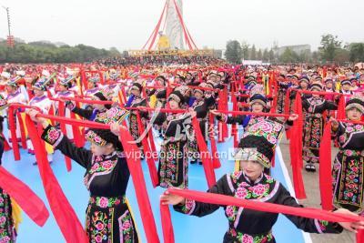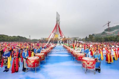 2018年11月8日,农历十月初一,是我国羌族群众一年一度的羌历新年,在北川新县城内,隆重举行了2018年第二届国家级羌族文化生态保护区“大美四川 魅力羌年”成果展开幕式。在阵阵锣鼓声,来自阿坝州羌区各县、绵阳市平武县的沙朗队伍,羌绣旗袍队伍,北川沙朗队伍、非遗队伍等30多支民俗文化队伍4000余人组成民俗巡游队伍从禹王桥出发开始前往新生广场一路巡演。