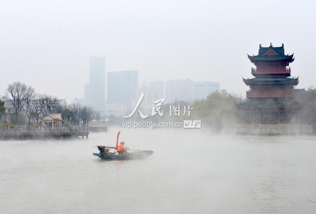 2018年12月11日,江苏淮安,里运河清江浦景区在烟雨中格外清秀。当日,淮安市区出现小雨天气, 里运河上飘起阵阵烟气,两岸的建筑忽隐忽现,如梦幻一般。