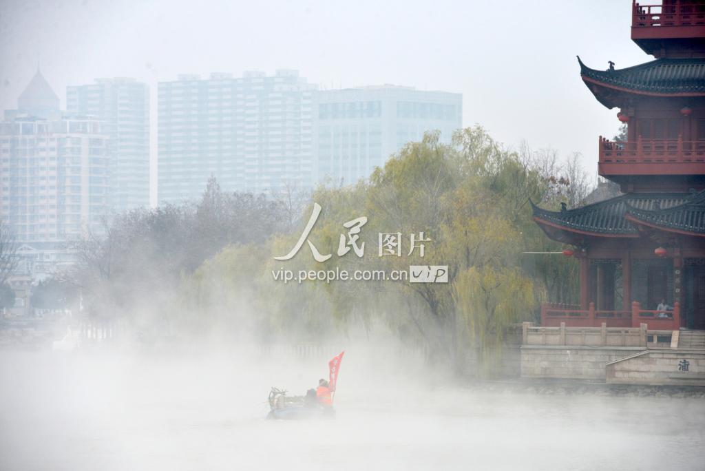 2018年12月11日,江苏淮安,里运河清江浦景区在烟雨中格外清秀。当日,淮安市区出现小雨天气, 里运河上飘起阵阵烟气,两岸的建筑忽隐忽现,如梦幻一般。