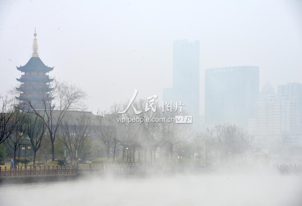 2018年12月11日,江苏淮安,里运河清江浦景区在烟雨中格外清秀。当日,淮安市区出现小雨天气, 里运河上飘起阵阵烟气,两岸的建筑忽隐忽现,如梦幻一般。