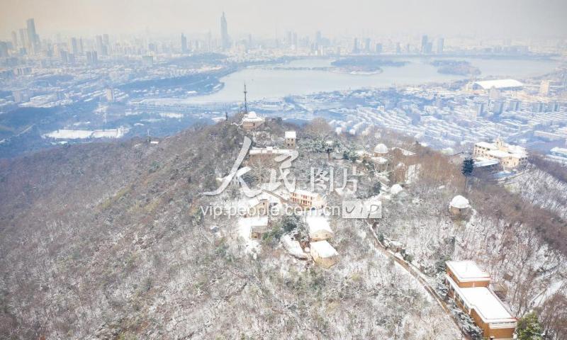 上传时间: 2018-12-31 14:53:01 图片说明: 2018年12月31日,无人机拍摄的南京紫金山天文台雪景。