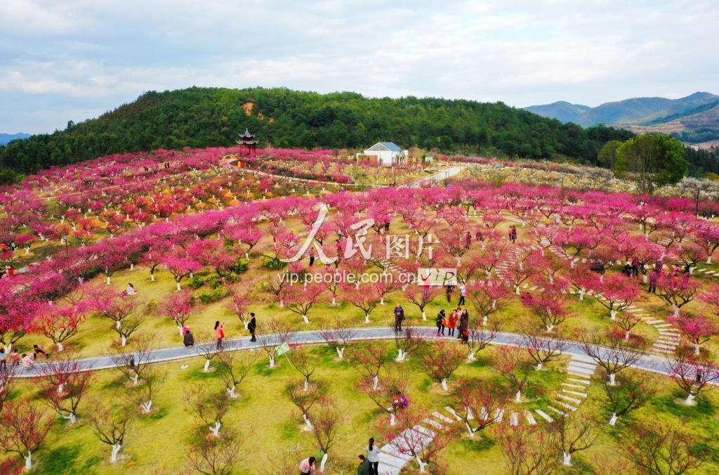 2019年2月2日,江西省赣州市大余县梅岭风景区梅花大观园内1.8万余株梅树竞相绽放,花香四溢,吸引众了多游客前来观光游玩。