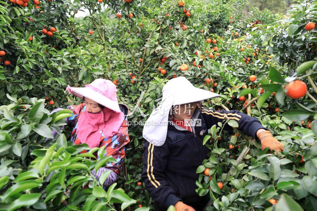 2月11日,果农在广西柳州市融安县大良镇山口村果园里采摘蜜桔。