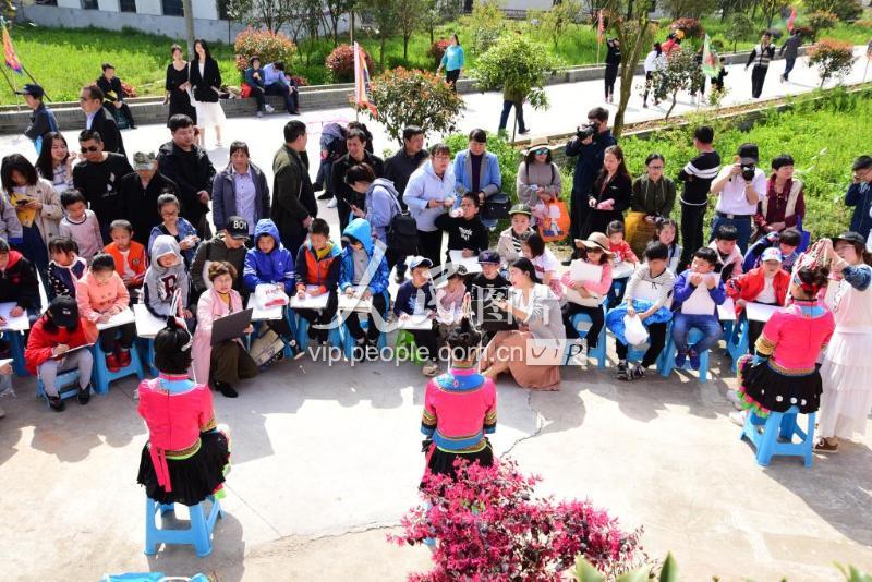 2019年4月6日,众多的小画家正在高桥村现场绘画畲娃。