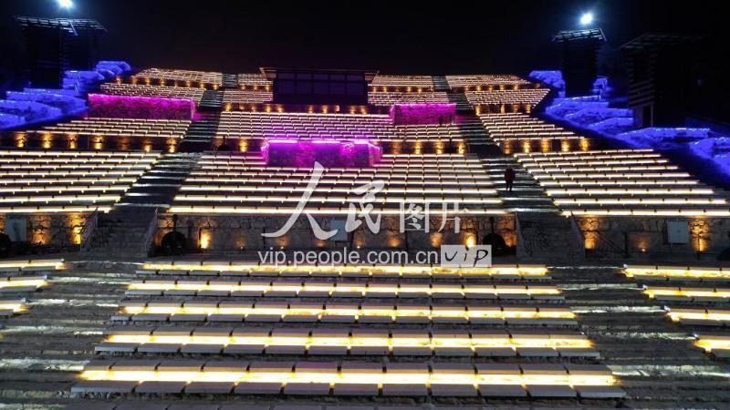 2019年4月19日,陕西商洛,航拍的夜色下的洛南音乐小镇。