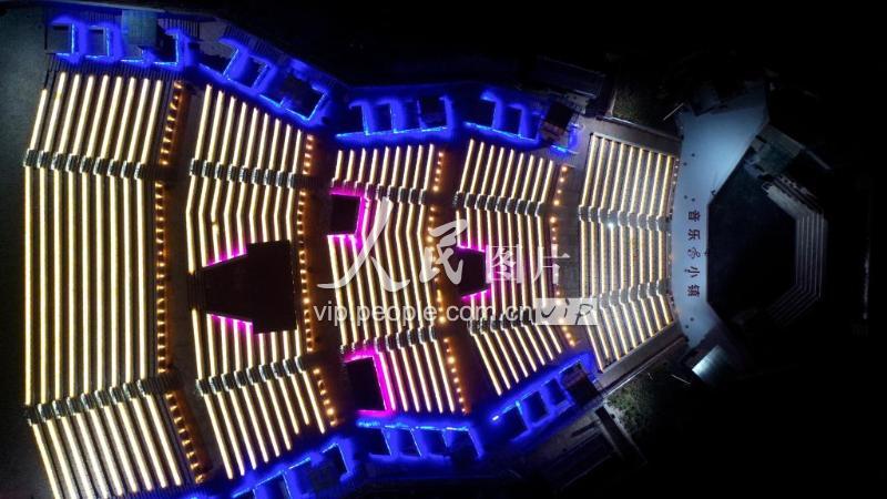 2019年4月19日,陕西商洛,航拍的夜色下的洛南音乐小镇。