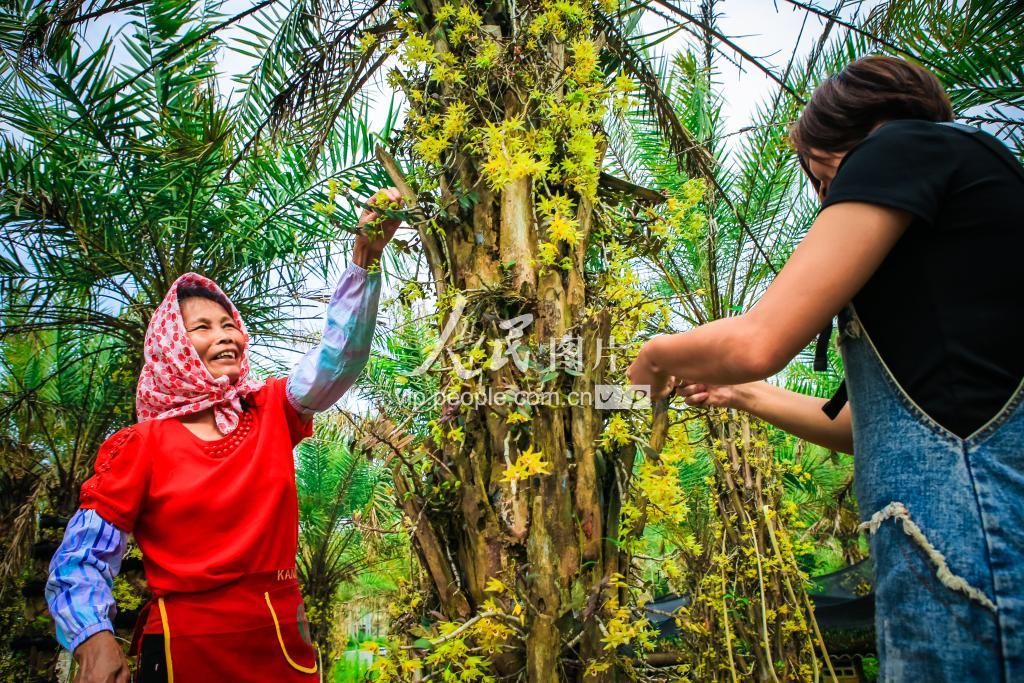 2019年5月31日福建省泉州市洛江区河市镇白洋村当地妇女采摘石斛花。