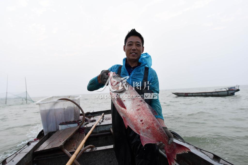 2019年7月1日凌晨时分,江苏省宿迁市骆马湖,渔民在湖区开展捕捞作业。骆马湖结束了为期5个月的禁渔期,平静多月的湖面又热闹起来。捕获的大白鱼达18斤重。