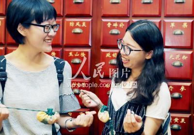 2019年7月21日,台湾中正大学等18所大学的52名学生来到江苏省苏州市百年中医药企业——“李良济”国医馆学做中药驱蚊香包。学生们在中药师的指导下,观察触摸丁香、金银花等药材,了解药性,用牛皮纸手工古法包药;并放入精美的真丝袋内,神奇的驱蚊驱虫、提神醒脑的中药香包就做成了。大学们一身幽幽的药香,正是中国中医药文化在他们身上留下的熏染印记。