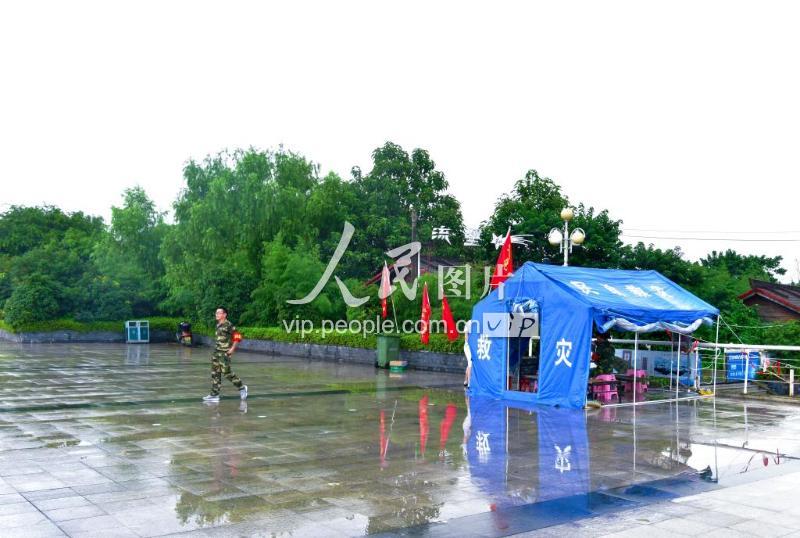 已连续十几日搭着帐篷24小时坚守在九江市星子县城鄱阳湖大堤上的工作人员。(2019年7月21日拍摄)