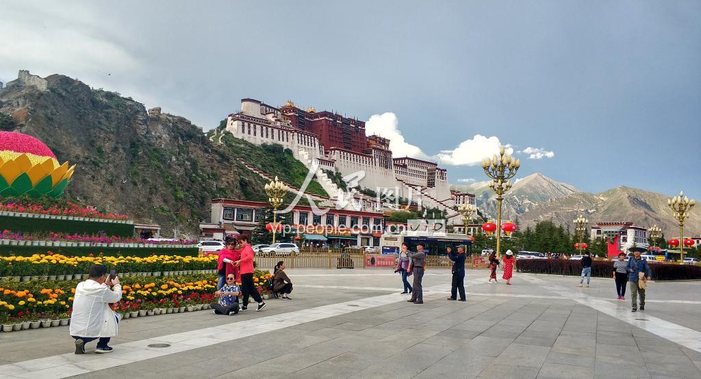 2019年8月15日,游人在西藏拉萨布达拉宫广场旅游观光。