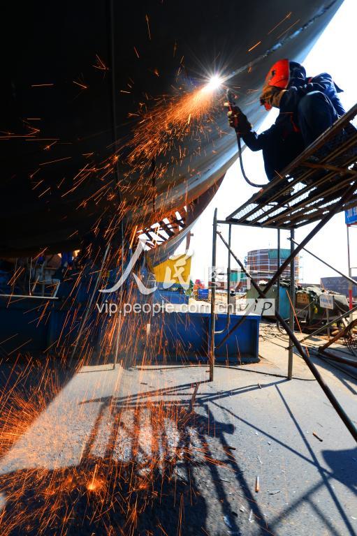 2019年8月16日,山东省青岛西海岸新区董家口循环经济区一重点项目建设现场现场焊花飞舞。