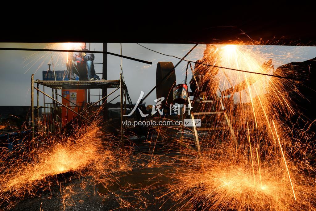 2019年8月16日,山东省青岛西海岸新区董家口循环经济区一重点项目建设现场现场焊花飞舞。