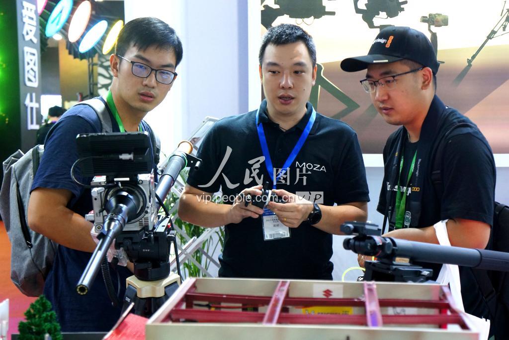 2019年8月21日,观众在北京中国国际展览馆中心观看以“创新驱动、构建全媒体新生态”为主题的“2019第二十八届北京国际广播电影电视展览会”。该展会汇聚了500多家广播影视生产厂家和运营机构,展出规模超出5万多平方米,展会对4K/8K超高清制播技术、5G传输及发展趋势、媒体融合新发展、县级融媒体建设方案、人工智能、云计算、大数据、IP化网络制播解决方案等热点内容进行展示。展览将持续到24日。 北京国际广播电影电视展览会(Beijing International Radio, TV & Film Exhibition, 简称“BIRTV”)创办于1987年,是我国广播电视行业年度最重要的展会和交流活动之一,是引领中国广播影视技术发展潮流的先进平台,是展示广电先进技术设备和发展成果的理想平台,是交流先进理念、谋求共同发展的有效平台。二十多年来,“BIRTV”已经成为世界排名第三、亚洲排名第一的专业性和观赏性兼备的国际广播影视展览会。