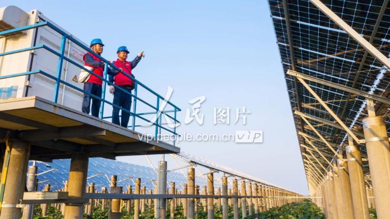 2019年9月2日,在安徽省天长市高邮湖畔,“红马甲”党员服务队队员正在对该市投运的14万千瓦光伏发电站发电设备进行检查维护(无人机拍摄)。当日,安徽省环保电能(风光)发电量累计达81.54亿千瓦时,同比增长7.8%。其中太阳能发电56.71亿千瓦时,同比增长42%;风力发电量达24.83亿千瓦时,同比增长1.1%。截至8月31日,安徽省风电、光伏和生物质等新能源总装机并网容量达1160.19万千瓦(相当新建11台100万千瓦的火力发电机组),占全省统调装机容量的16.08%。