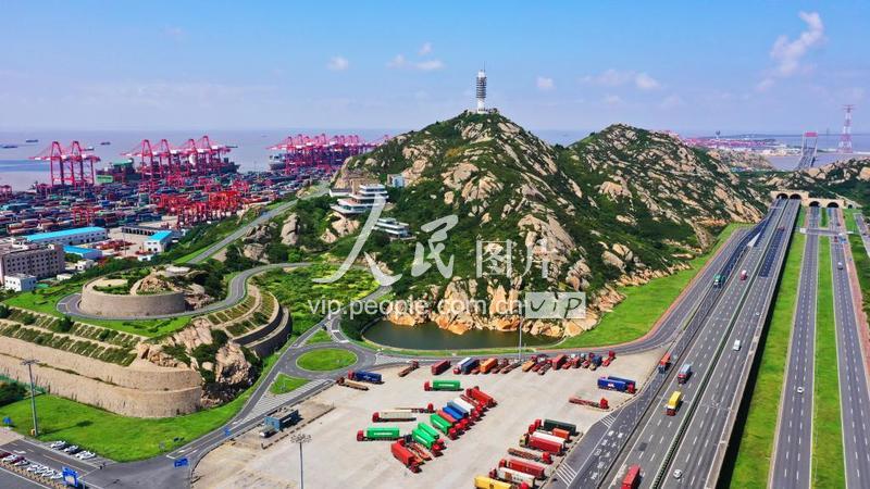 2019年9月13日,航拍上海洋山深水港港区。洋山深水港区位于杭州湾口外的浙江省嵊泗崎岖列岛,由大洋山、小洋山等数十个岛屿组成,是我国首个在微小岛上建设的港口。