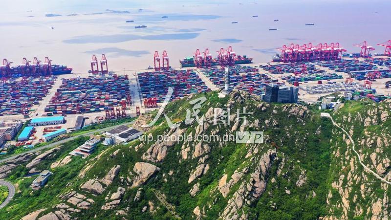 2019年9月13日,航拍上海洋山深水港港区。洋山深水港区位于杭州湾口外的浙江省嵊泗崎岖列岛,由大洋山、小洋山等数十个岛屿组成,是我国首个在微小岛上建设的港口。