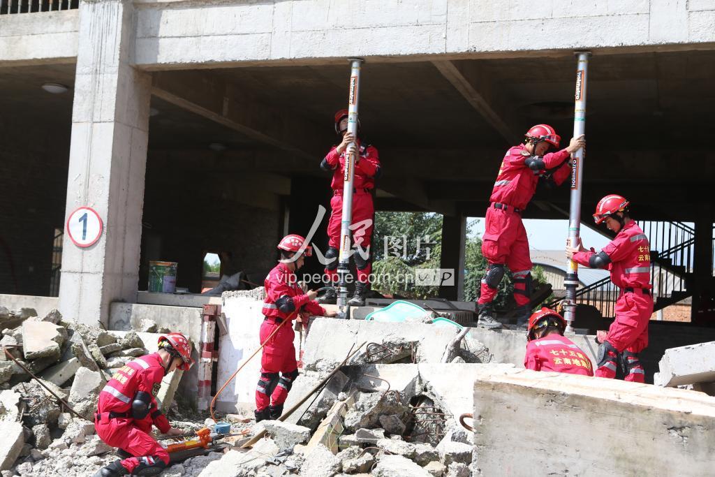 2019年9月17日,云南昆明,搜救队员对可能造成威胁的梁体进行顶撑加固。