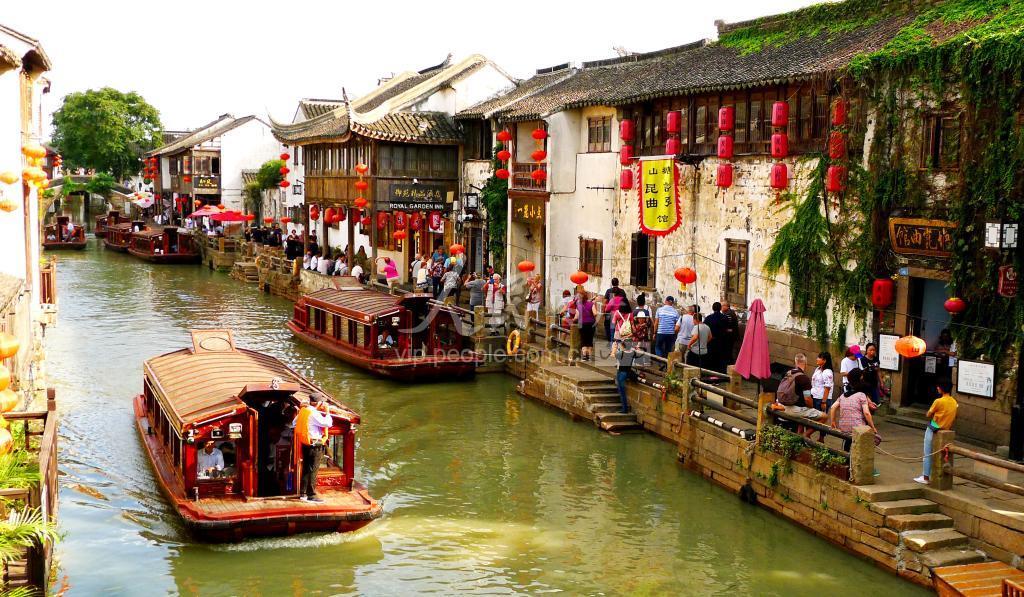 2019年9月19日拍摄的苏州市七里山塘景区古街水巷游人如织情景。