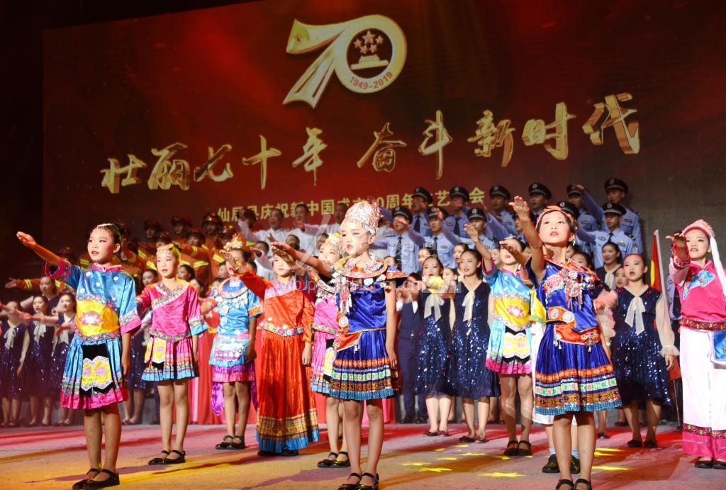 2019年9月26日晚上,在浙江省台州市仙居中学体育馆,仙居县第五小学的少数民族学生演唱《没有共产党就没有新中国》等歌曲,祝福祖国。 当晚,浙江省台州市仙居县庆祝新中国成立70周年文艺晚会《壮丽七十年 奋斗新时代》在仙居中学体育馆举行。晚会分《红色仙居》、《开放仙居》、《绿色仙居》等三个篇章,通过合唱、朗诵、舞蹈等形式,用歌声庆祝伟大祖国的生日。