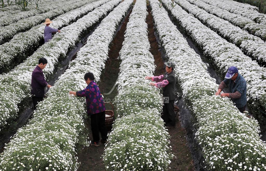 “寒露”过后,“霜降”将至。连日来,受寒潮阴雨降温天气影响,被誉为“中国四大名菊”之一的安徽省黄山市休宁县海阳镇盐铺村的2600亩徽州贡菊正进入盛采季,村民们抢抓时节,加紧采收,力争在“霜降”节气之前采收归仓,确保不受霜冻损失。