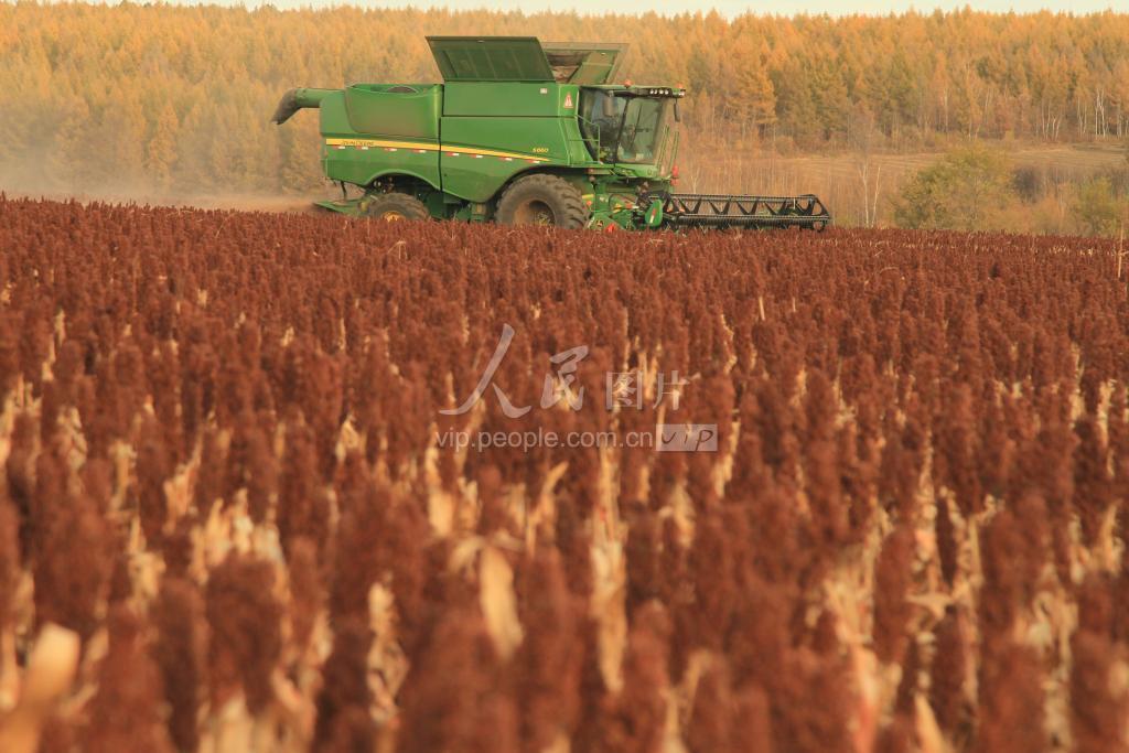 2019年10月13日下午,黑龙江省大西江农场第六管理区抢收高粱,多打粮食,向祖国献礼。