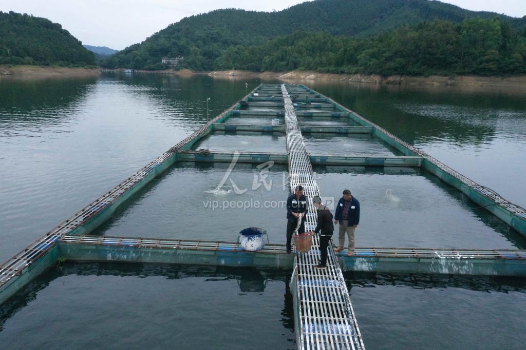 10月14日,在广西柳州市融安县长安镇安宁村泗维河,刘文香(中)和合作社社员交流鱼病防治技术。