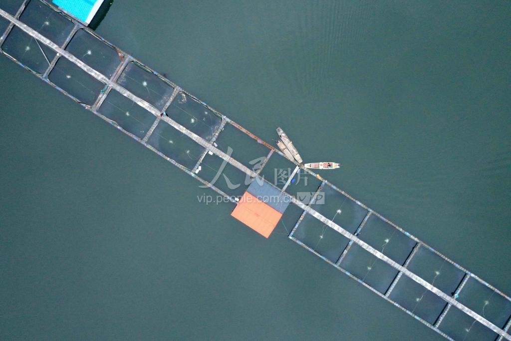 10月14日,在广西柳州市融安县长安镇安宁村泗维河拍摄的网箱养鱼。