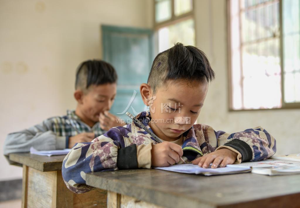 2019年10月16日,湖南省道县乐福堂倒江源小学,学生在做作业。