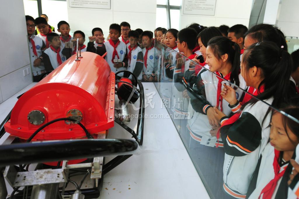 2019年10月21日,学生们在青岛国际机器人中心参观了解水下机器人。