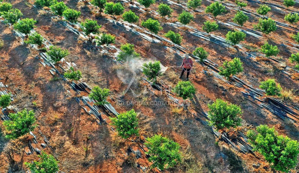 2019年10月21日,职业农民在江西省吉安市永丰县新天地家庭农场管理水土保持生态果园。近年来,吉安市永丰县生态建设产业化和产业发展生态化协同发力,以水土保持生态林果业发展推动荒山坡地治理,在防治水土流失、改善生态环境的同时,水保绿色产业释放生态红利,加快当地群众的脱贫致富步伐。