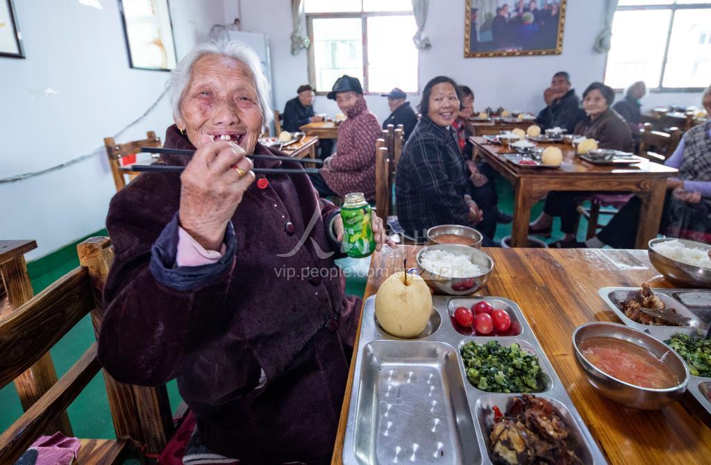 2019年10月31日,江西省新余市渝水区珠珊镇花田村颐养之家的老人们观看文艺节目、参与游戏后享用丰盛的爱心午餐。据了解,为破解农村留守、独居和贫困老人养老问题,2016年12月,江西新余市从发挥基层党组织引领作用入手,探索党建与民生融合、低成本可持续的“党建+颐养之家”农村居家养老新路,在新余市行政村全面推行,由当地政府部门、社会团体、商会组织以及本地企业家共同参与。截至目前,新余市共建成颐养之家736 个,“入家 ” 老人达到 10117 人,覆盖了全市所有行政村和有“入家”需要的老人。“颐养之家”的建设经费属一次性投入,采取“政府补贴、村级配套、社会捐助、个人出资”等多种模式,全市年龄在73岁(含)以上独居、困难老人每人每月个人负担200元可安心“入家”,享受有专人照顾的晚年幸福生活。