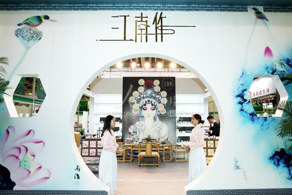 2019年11月1日,在第13届苏州国际茶叶博览会上,来自上海的茶具商展厅与非遗相结合,江南味十足。