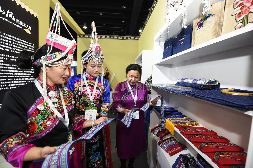 11月1日,参展商展示具有畲族风情的民族工艺品。