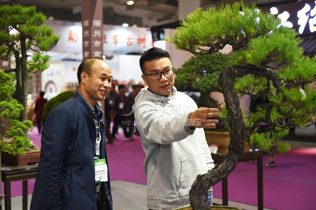 11月1日,客商在了解松树盆景。