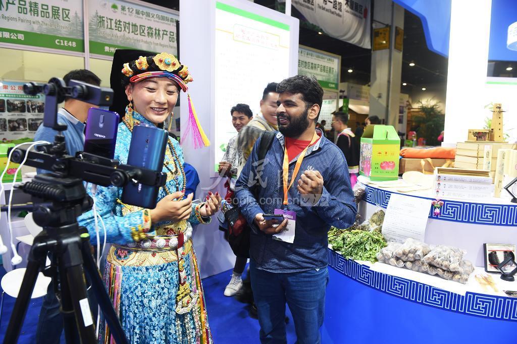 11月1日,外商向藏族姑娘了解电商直播情况。