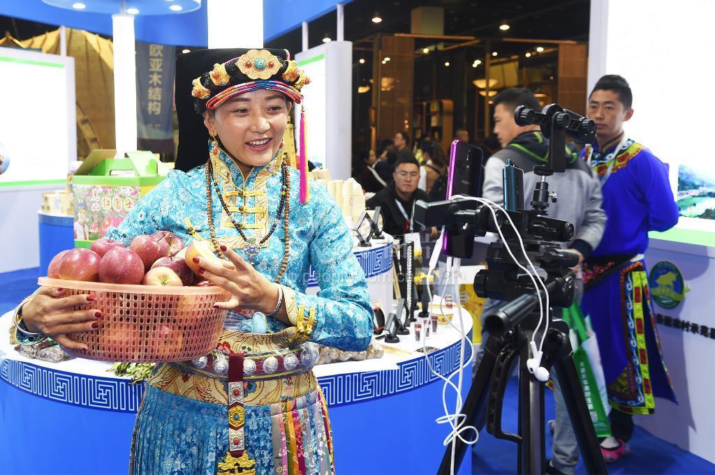 11月1日,来自汶川的藏族姑娘在直播当地水果。