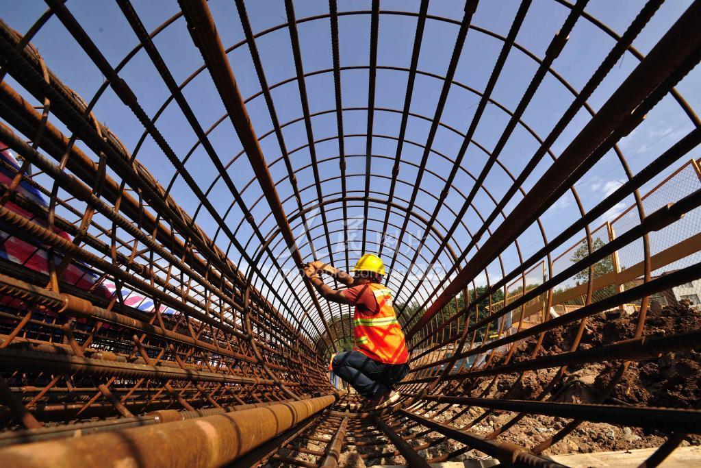 2019年11月1日,在江西省宜春市万载县G220绕城线鹅峰乡多江村路段拍摄到的工人正在为钢筋柱加固。 江西省宜春市万载县G220绕城线是当地重点工程之一,该项目路线起万载县鹅峰乡东田村,穿越鹅峰乡多江村,康乐街道联和村、兴联村、马步乡新民村离开县城,全长14.76公里,工程概算总投资7亿余元。截至目前,沿途桥、涵洞、路等主体工程均已进入路基铺设完成阶段,按照工程进度2020年12月以前即可全面竣工。