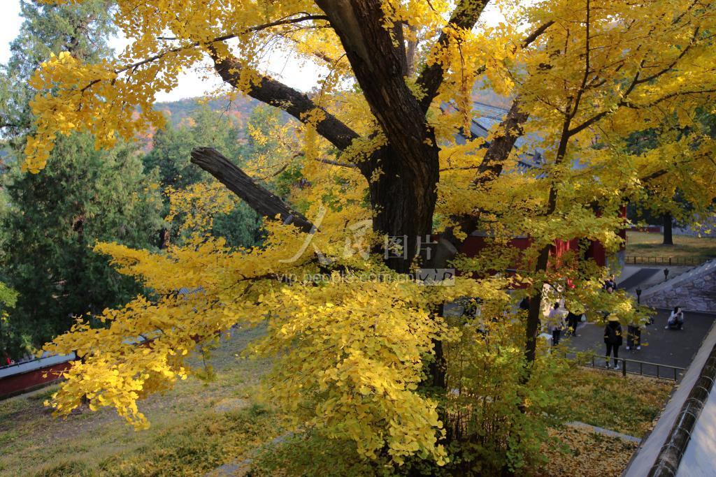 2019年11月5日,北京香山公园千年香山寺两棵古银杏又到金黄时,深秋的银杏金灿灿、美丽壮观醉游人。
