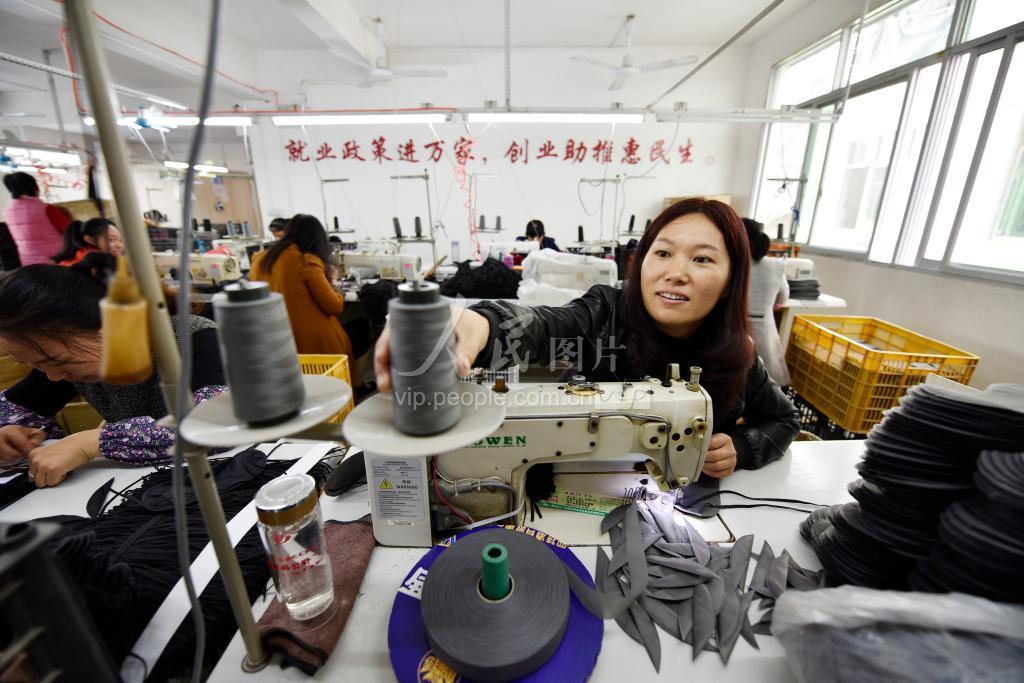 2019年11月7日,江西省宁都县田头镇留守妇女在馨美航空布艺礼品有限公司扶贫车间生产航空眼罩。 该公司是省级就业扶贫车间,自创办以来,企业订单充足,发展态势良好,提供就业岗位260个,其中吸纳贫困人口就业28人,年产值达2000万元,产品随航空机票远销世界各地。近年来,宁都县积极引导劳动密集型企业把生产车间延伸到乡村,办好就业扶贫车间,带动贫困群众加快脱贫致富,走出一条群众增收、产业发展、企业壮大、多方共赢的脱贫新路子。
