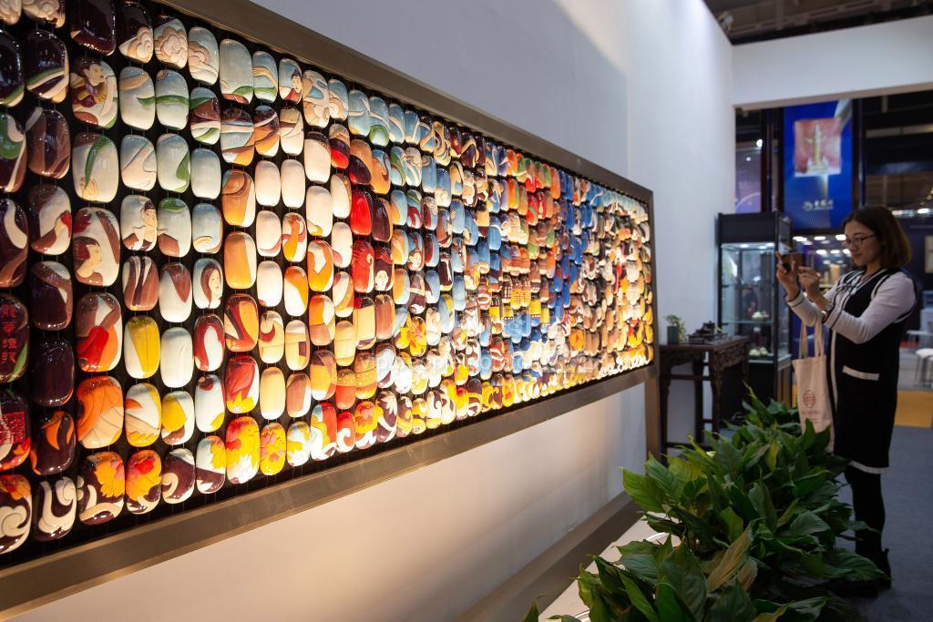 2019年11月7日,参观者在首届中国工艺美术博览会上参观。