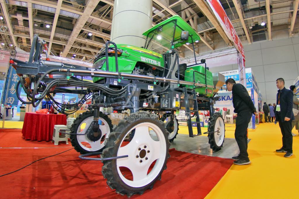 2019年11月8日,观众在第二十届国际果蔬·食品博览会上参观植保机械。