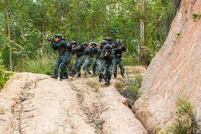 2019年11月8日,武警广西总队来宾支队根据季节特点组织特战队员开展“冬季大练兵”活动,重点对刺杀、班组战术、400米障碍、攀登等课目进行强化训练,全面锤炼特战队员的技战术水平。