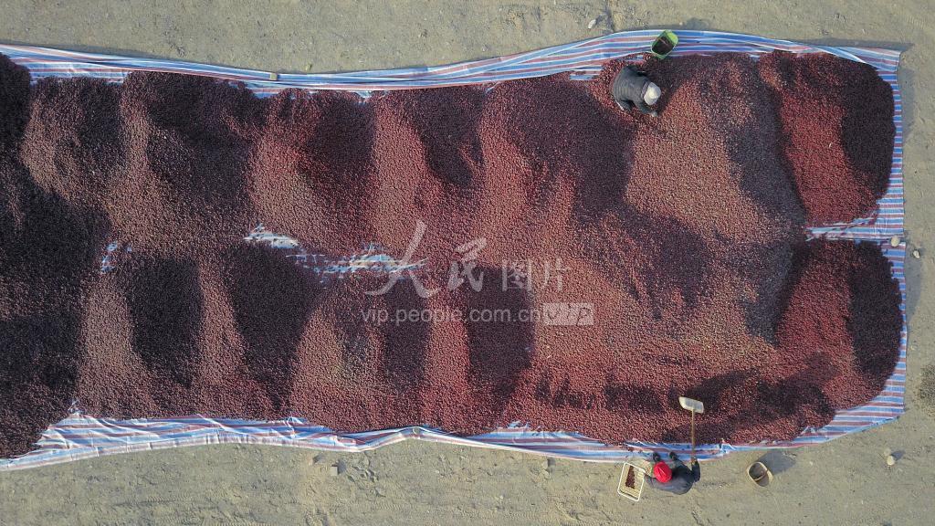 随着立冬节气的到来,位于新疆塔里木盆地东部、阿尔金山脚下的若羌县红枣采摘工作已结尾,进入晾晒、分理期,呈现出一片片的红色,发出一阵阵的枣香,成了阿尔金山脚下的一道火红的风景线。 新疆若羌红枣个大美观,椭圆形,晒干为深红色,新鲜时肉脆枣甜,吃后余香满口。截至目前,新疆若羌县累计种植红枣生态经济林23.38万亩,完成绿色红枣基地认证10万亩,有机红枣基地认证10万亩。在红枣产业的强势带动下,该县枣农人均年收入达3万余元。