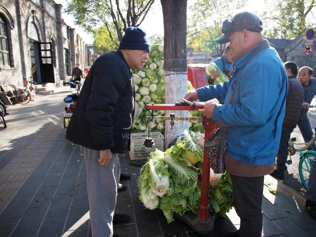 2019年11月13日,在北京市东城区雍和宫大街的同日生粮行冬储菜销售站点,市民们踊跃的购买各种冬储菜。 该站点的冬储菜有大白菜,大葱,雪里蕻,白薯等品种,其中,被誉为“百姓当家菜”的大白菜最受广大市民欢迎。