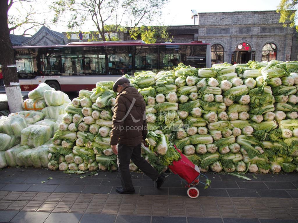 2019年11月13日,在北京市东城区雍和宫大街的同日生粮行冬储菜销售站点,市民们踊跃的购买各种冬储菜。 该站点的冬储菜有大白菜,大葱,雪里蕻,白薯等品种,其中,被誉为“百姓当家菜”的大白菜最受广大市民欢迎。