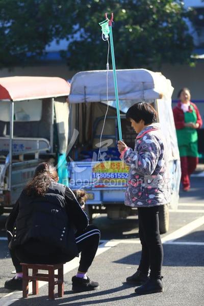 2019年11月14日,在安徽省淮北市濉溪县百善镇道口村卫生室,几名正在打点滴的患儿,家长用衣服撑子将吊瓶高高举起,在室外行走,防止患儿因打点滴而哭闹。家长们高高举起的吊瓶,如同高高举起的爱,成为一幅温暖而感人的画面。据了解,近期因气温变化,引发呼吸道疾病的患儿明显增多。